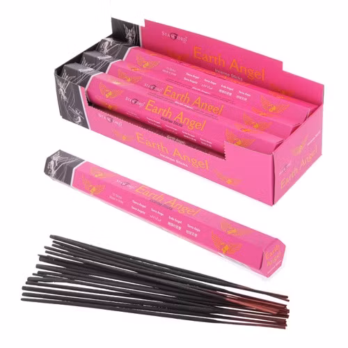 Earth Angel har en len doft av frankincense och är jordande och passar väldigt bra vid meditation och mindfulness. Ca 15 stickor/frp. Brinntid ca 30 min.