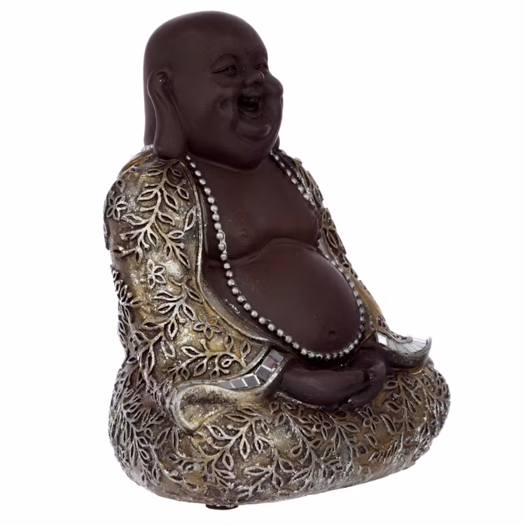Hem › Buddha › Sittande Happy Buddha Sittande Happy Buddha I lager. 0 kr 198 kr Leverantör: Puckator Stor sittande Happy Buddha i brunt och silver. Storlek 16,5*11*17,5 cm. Vikt ca 450 g Flera populära produkter Lila, Guld och Svart Thai Buddha i Händer Stl L 299 kr Läs mer Sittande Thai Buddha i hand i Guld 299 kr Läs mer Happy Buddha "No Speak" 125 kr Läs mer Happy Buddha "No See" 125 kr Läs mer
