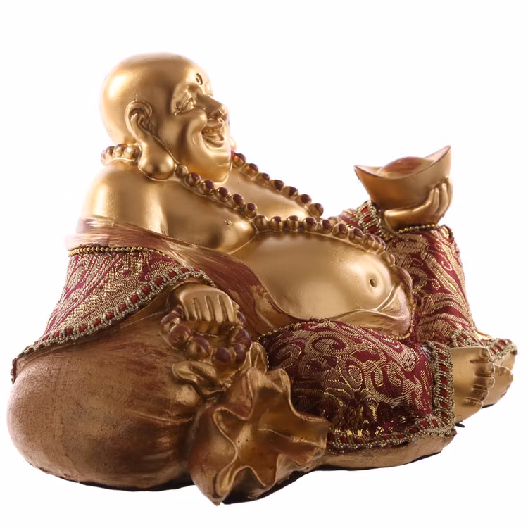 Sittande Happy Buddha med säck i Rött och Guld