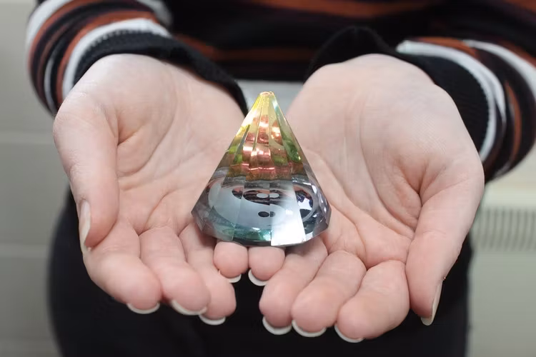 Förtrollande pyramid med Yin Yang i glas.