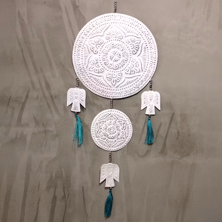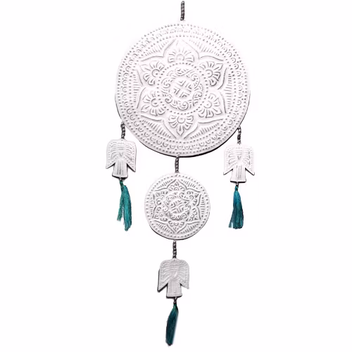 | Dessa förtrollande aluminiummobiler i fashionabla pastellfärger och trendiga former ger en touch av Bali-magi till alla hem. Slagen och handmålad aluminium har använts i generationer för användning i tempel. Nu används samma teknik för att göra dessa förtrollande mobiler. Handgjorda av ett mor- och dotterföretag, designen komplett med pärlor och tofsdetaljer gör den till en vacker heminredning. Storlek Aluminium Mobil : H: 70x1x30cm Lotusstorlek Stor: 30x30cm Ängelstorlek Liten: 8x7cm |